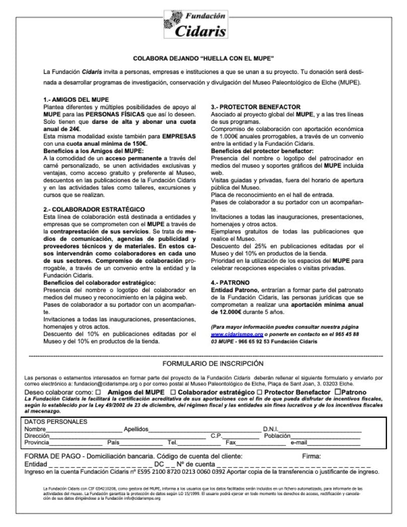 Forma parte de esta aventura llamada Museo Paleontológico de Elche y con tu apoyo, contribuye a la investigación, conservación y divulgación que se realiza en la institución.